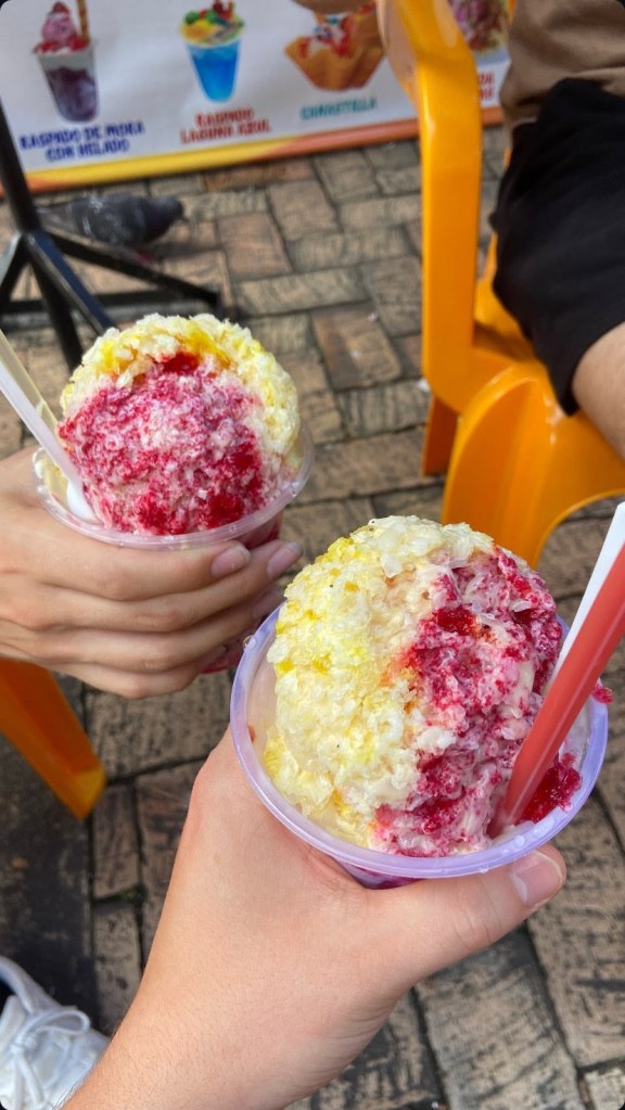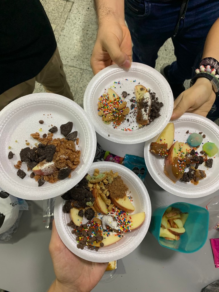Raspado, “an icy beverage with fresh fruit and sweetened condensed milk. Four different kinds of salchipapas, “a South American fast food dish commonly consumed as street food. Breakfast with my roommate and friend after a tough CrossFit workout. A night out at Food Truck Park to celebrate Aliya’s birthday with coworkers and friends! Introducing my students to candied applies (we used apple slices, Colombian arequipe and a random assortment of sweet toppings). Fried dough buñuelos and iced coffee from the bakery Jhon Pan. The best burger I have eaten in quite a while, from 10/10 Burger.