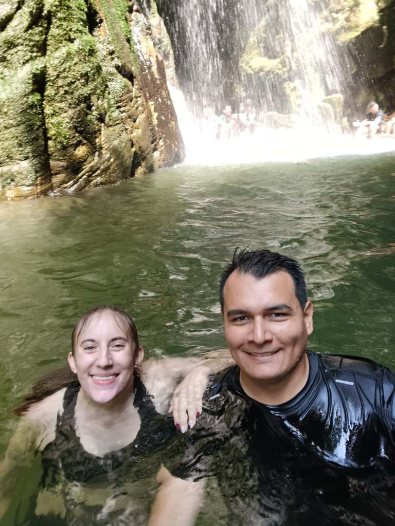 One of my favorite weekend activities, particularly since 2025 began, is going on group hiking and waterfall excursions—and the latest one on March 9 did not disappoint! I joined my fifth (!) group plan with local Villavicencio influencer (and now a dear friend) Thanya and nearly forty other people on an early Sunday morning. We all piled into a chiva bus up to La Cumbre on the way to Acacías, about a 45-minute drive away. Our hike up into the mountains took us to three different waterfalls, each with rocks and pools where we could swim. In my experience, a Villavicencio hike isn’t complete without a random farm dog tagging along for the day, and this particular Sunday, we were joined by two!
