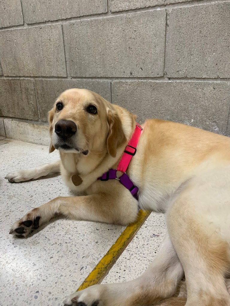 My favorite student, paws down, is the world’s softest and sweetest yellow Labrador who attends class occasionally with her owner.